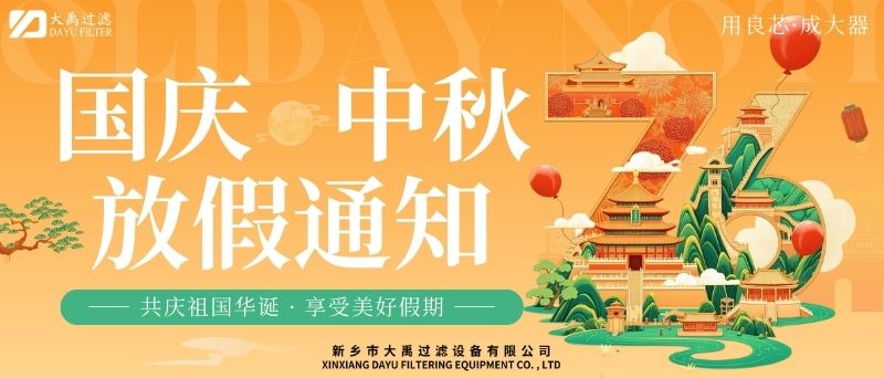 尊敬的客戶及合作伙伴:秋風(fēng)送爽,丹桂飄香。值此國慶與中秋雙節(jié)來臨之際,謹(jǐn)向您及家人致以zui誠摯的節(jié)日祝福!根據(jù)國家法定節(jié)假日安排,結(jié)合公司實(shí)際情況,現(xiàn)將2025年國慶+中秋雙節(jié)放假安排及相關(guān)事項(xiàng)通知如下:一、放假時(shí)間2025年10月1日(星期三)至10月6日(星期一),共計(jì)6天。10月7日(星期二)起正常上班。9月28日(周日)、10月12日(周日)補(bǔ)班。二、業(yè)務(wù)服務(wù)說明放假期間,公司線上咨詢通道保持暢通。銷售人員將不定期查看并回復(fù)您的咨詢,但受假期影響,可能存在回復(fù)延遲的情況,敬請諒解。如遇緊急事項(xiàng),您可撥打以下熱線:王經(jīng)理13613905650;李經(jīng)理13839073363,我們將竭誠為您服務(wù)。三、生產(chǎn)安排提醒因車間節(jié)前生產(chǎn)訂單已排滿,為確保假期前后生產(chǎn)質(zhì)量與效率,放假期間(10月1日至10月6日)將暫停安排新生產(chǎn)訂單生產(chǎn)。節(jié)前已下單的訂單將按原計(jì)劃正常推進(jìn),放假期間新接訂單將統(tǒng)一順延至10月7日復(fù)工后,按序安排生產(chǎn)。由此帶來的不便,我們深表歉意,感謝您的理解與支持。四、溫馨提示假期出行請注意安全,做好個(gè)人防護(hù)。公司官網(wǎng)及社交媒體平臺將持續(xù)更新節(jié)日動態(tài)及服務(wù)資訊,歡迎隨時(shí)關(guān)注。佳節(jié)共團(tuán)圓,服務(wù)不間斷。值此雙節(jié)同慶的美好時(shí)刻,衷心感謝您長期以來對我司的信任與支持!我們期待在節(jié)后以更飽滿的熱情、更優(yōu).質(zhì)的服務(wù)與您攜手同行,共啟新程!此致敬禮!新鄉(xiāng)市大禹過濾設(shè)備有限公司2025年9月28日